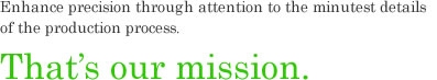This division was launched to manufacture parts to help our company to meet cost, quality and deadline requirements for machinery developed in-house. Its reputation, however, soon grew beyond the company itself, and we now manufacture parts for other enterprises. Our relentless pursuit of greater precision and even lower costs will ensure that we continue to grow well into the future.